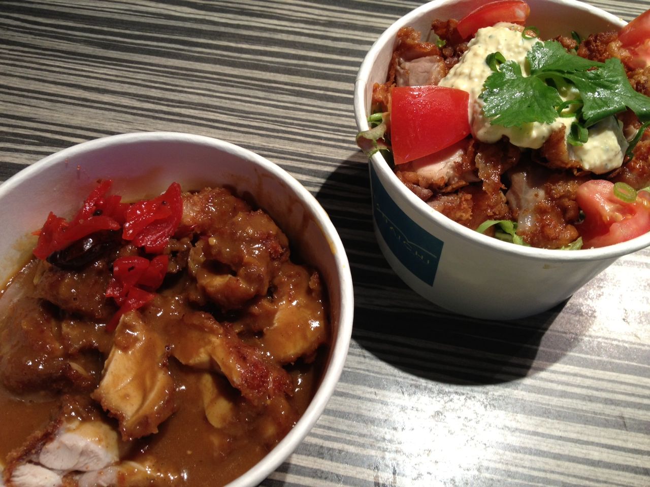 写真は、手前がジャパニーズカレー、奥がチキン丼です。